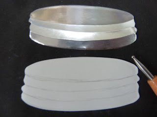 Cut the lid from heavy silver cardstock. On the back of it, pencil in lines.