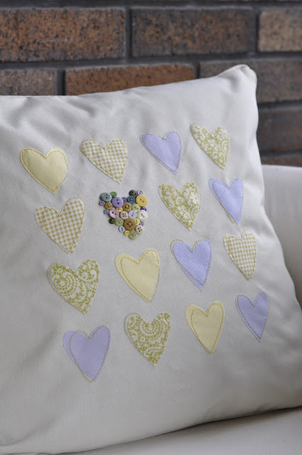Fill the inside of your drawn heart shape with different sized buttons sewn on with neutral coloured thread.