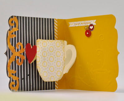 My photograph doesn't show the lovely embossed design that appears in the right bottom corner, it is such a perfect partner to this cute cup cut out.