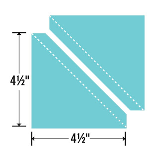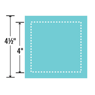 also cut 1 square from a 3rd fabric (blue) measuring 8.5" OR use 4 squares cut from the 4" finished square die