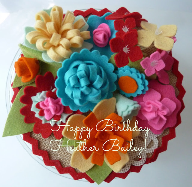 I decided to make a birthday cake for Heather using some new burlap matboard I received from my friends at Crescent Cardboard, wool felt, and my Sizzix flower dies. The felt just cuts like butter and it is so much fun to arrange the pieces in different colors and combinations. You can also add decorative hand stitching to really make them pop.