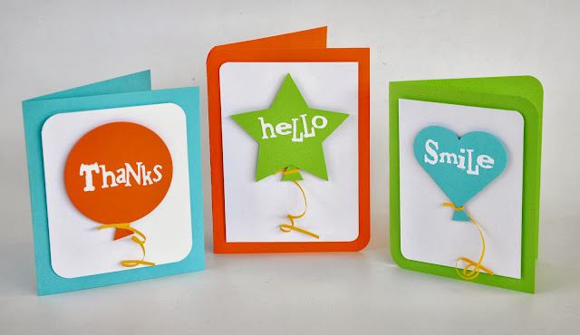 First of all I chose my three main colours and white, having top quality cardstock makes all the difference, I always use Inspire Me Papers for this kind of thing. The main shapes I cut with my Framelits, the letters with the alphabet die. After die cutting the balloon shape, I would cut a triangle from the same card and attach at the base of the shape with PVA.