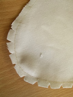 I cut 4 layers of medium weight white cotton fabric in the shape of a stocking ( you can find lots of images on line) 13" long by 10" at the toe.