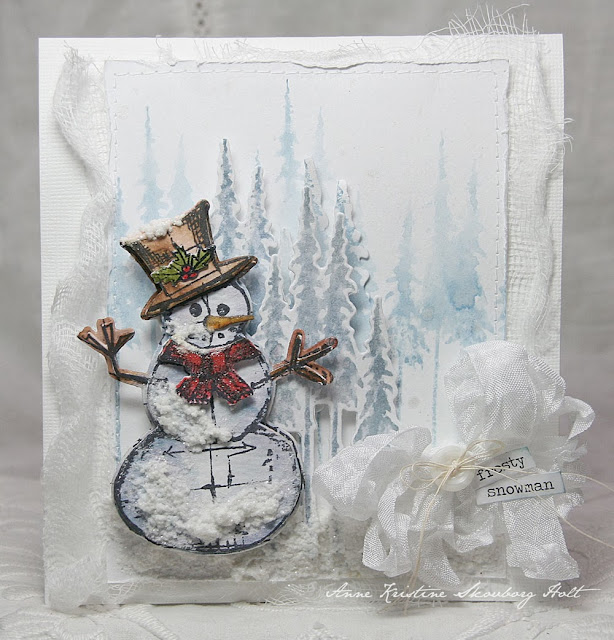 Hei alle sammen ...håper du har hatt en fin uke... i dag har jeg et kort med en herlig snømann å vise dere. Settene med Framelits og stempler er så fine til slike prosjekter... du slipper å klippe ut bittesmå detaljer.