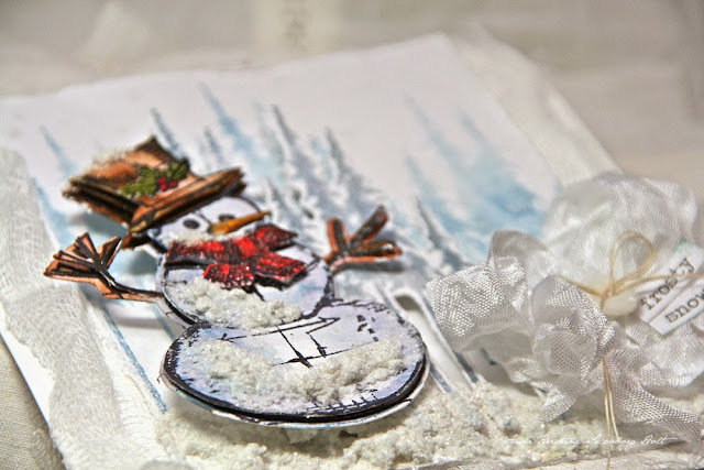 Make some snow effect with Struktur paste and Distress Glitter. Let it dry.