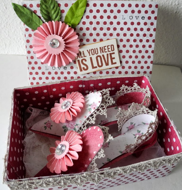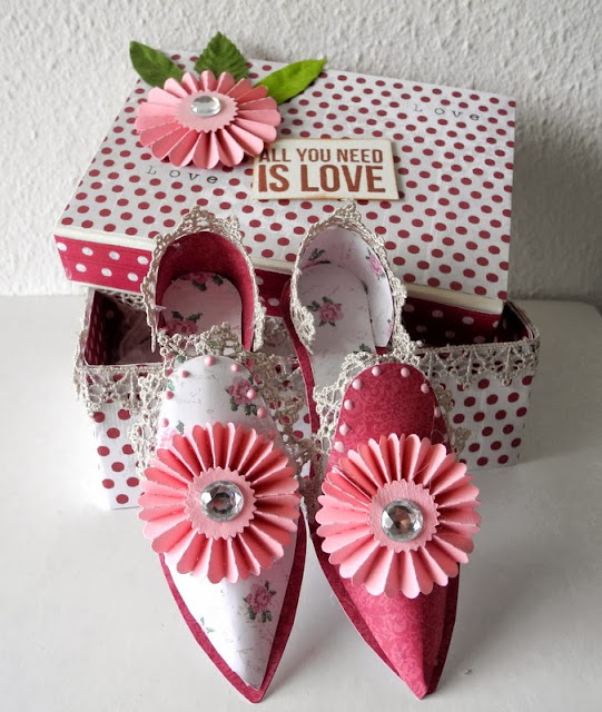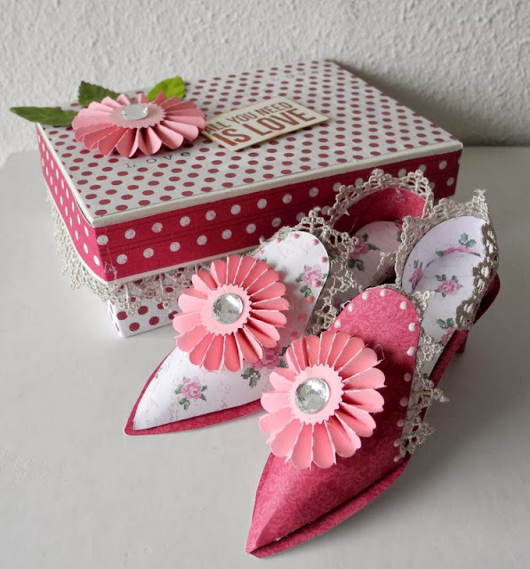I hope you all had a great week. Today I will show you ballroom slippers made with Sizzix Bigz L die Ballroom Slippers and how I made a box for shoes