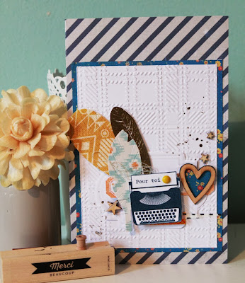 Des die-cuts plumes ainsi que des tampons sont rajoutés en guise de décoration.