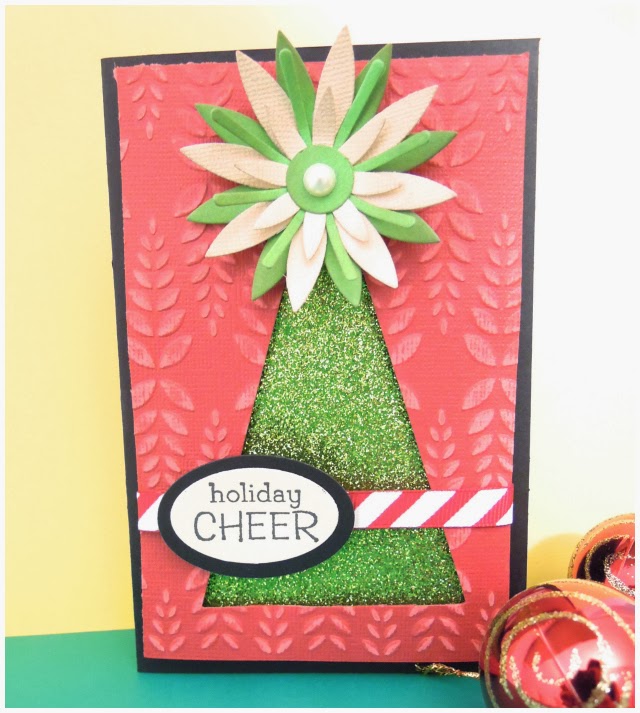 Teenagers love very specific things. They like bright colors, glitter, big necklaces, make up, interesting textures... And sometimes they find our crafting boring. So today I created a Christmas card especially for them. It has a little beat of what they like: It is bright, it has glitter and a really big embellishment, it has a background with an interesting texture... Ok, it has no make up, but I would accompany my card with some nice make up kit as a gift ;)