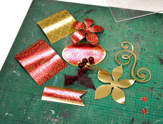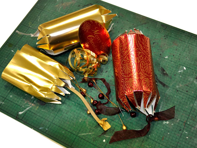Today we had Christmas Lunch here at Sizzix Central complete with Crackers, I took some of the cracker scraps from the table.