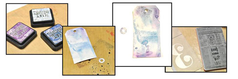 I also use a variety of Distress Inks, namely, Faded Jeans, Weathered Wood and Dusty Concord as well as Crackle Accents all from Ranger.