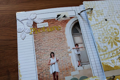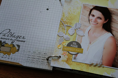 Nous l'avons vu la semaine dernière j'ai utilisé le die feuillage sur la page de couverture en guise de décoration.