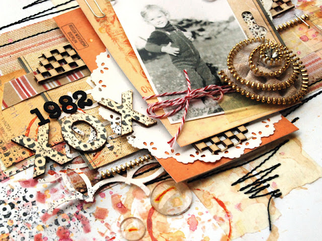 On this layout I used 2 beautiful Sizzix dies - and the composition just came to my mind in a moment! A circle goes beautifully with the doily I used and the decorative strip - gives extra depth and dimension.