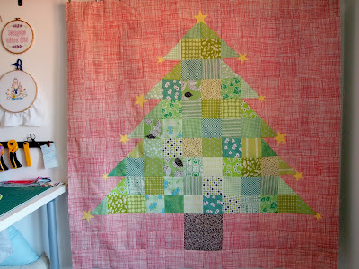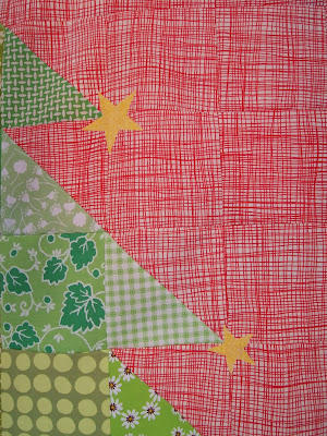 ...I appliqued stars onto the points of the tree and quilted really simply, just following the lines of the squares.