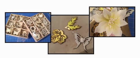 I love using mulberry or silk paper because it has such a lovely texture but it is hard to shape as one would with card. I was handed rolls of adhesive silk paper on my first day at the show and this is a great solution to my problem, it allowed me to attach it to medium weight card to make my flowers.Next I die cut all the elements to make my flower which is far fewer than need to make a poinsettia, I just wanted a generic 'pretty flower', I then delicately inked the inner part of the petals.