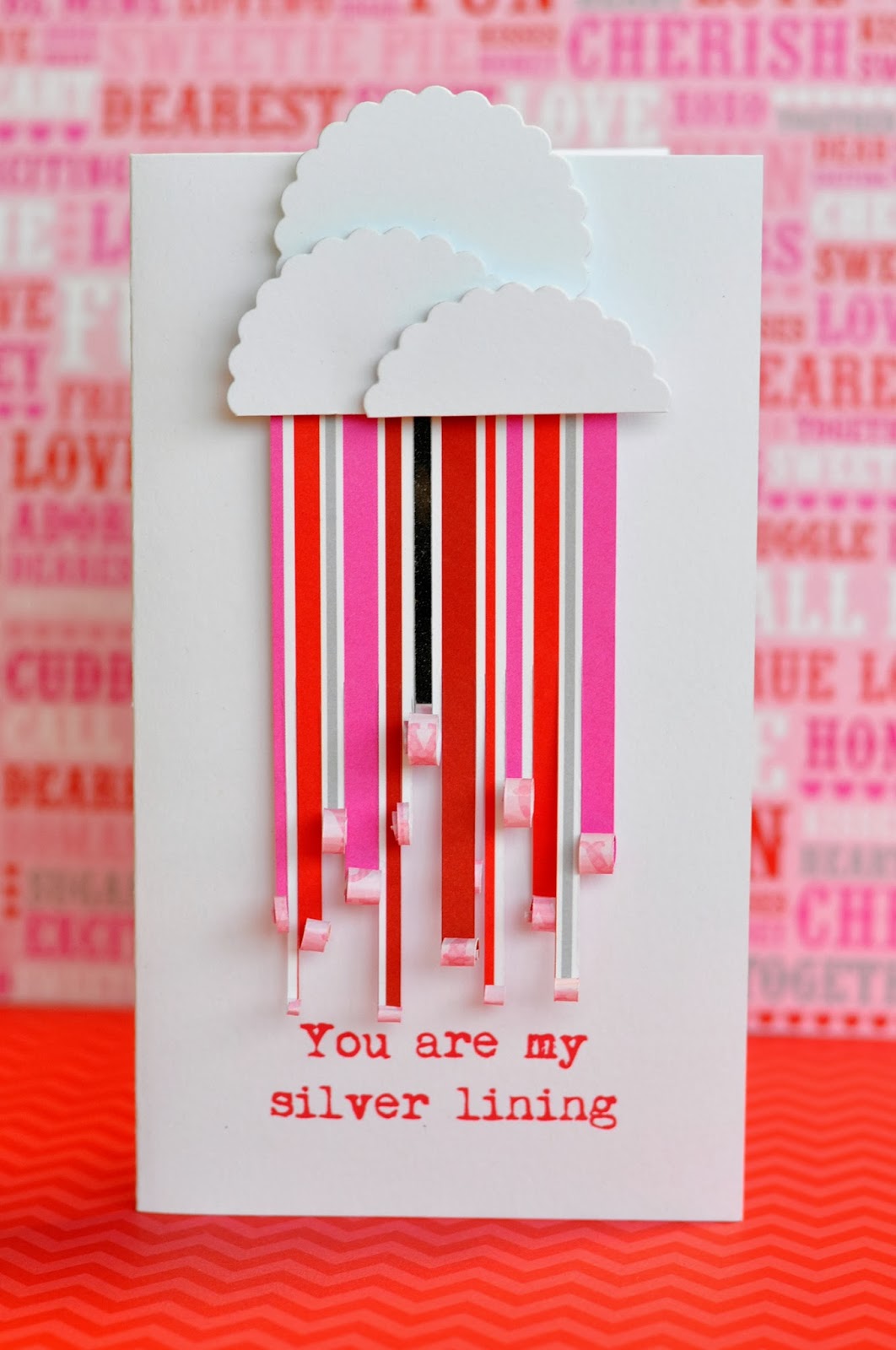 My card is now ready to assemble, I printed the legend 'You are my silver lining' on the base of a card measuring 18 x 10.5cm before attaching the stripped paper and finally my cloud was attached once more using 3D foam pads. I hope you like it, because I have just had an even better idea for next week!!!
