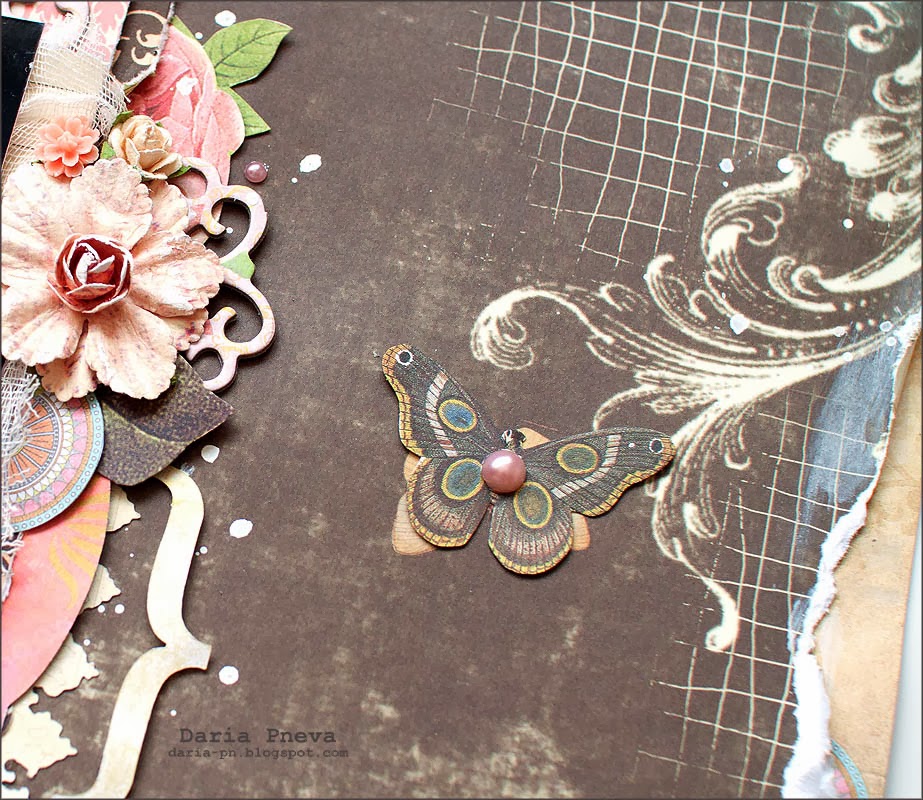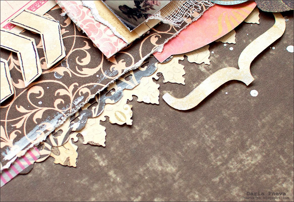 Я люблю многослойность в работах. И мне нравится для создания слоев использовать различные ажурные бордюры, что я и сделала в этой работе.
