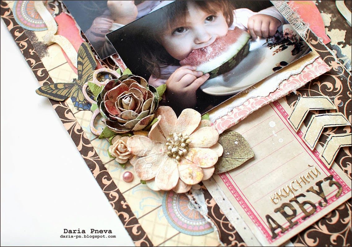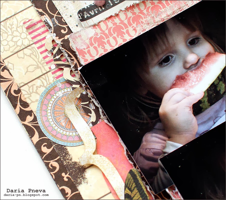 Today I would like to show a layout for my friends. This layout is about a girl who loves watermelons very much.
