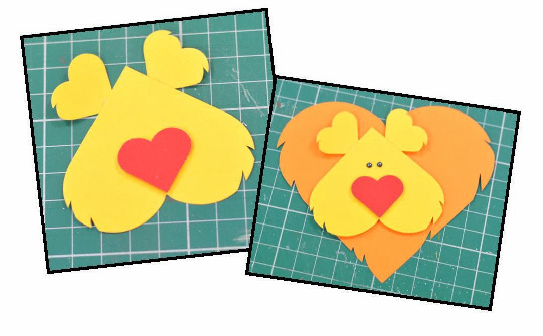 A couple of weeks ago I said that I would feature some more ideas using basic shapes in a funky, creative way. I stumbled across a sight called mykidcraft.com (great site for kids craft ideas, big kids too!) which featured a great way of using heart shapes to create a wonderful lion so I played around with the idea until I came up with this weeks blog.