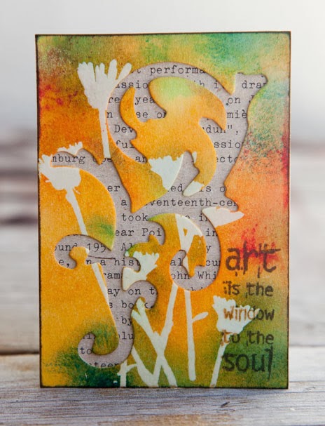 Every month on the Darkroom Door blog we hold an Artist Trading Card swap. It's a great way for crafters to share a bit of their own artwork with other like minded crafters around the world and gain some new ideas and inspiration! Each month has a different theme. Recently one of the themes was 'Darkroom Door & Sizzix' where all the artists needed to use a Darkroom Door stamp or paper product combined with a Sizzix die or embossing folder.