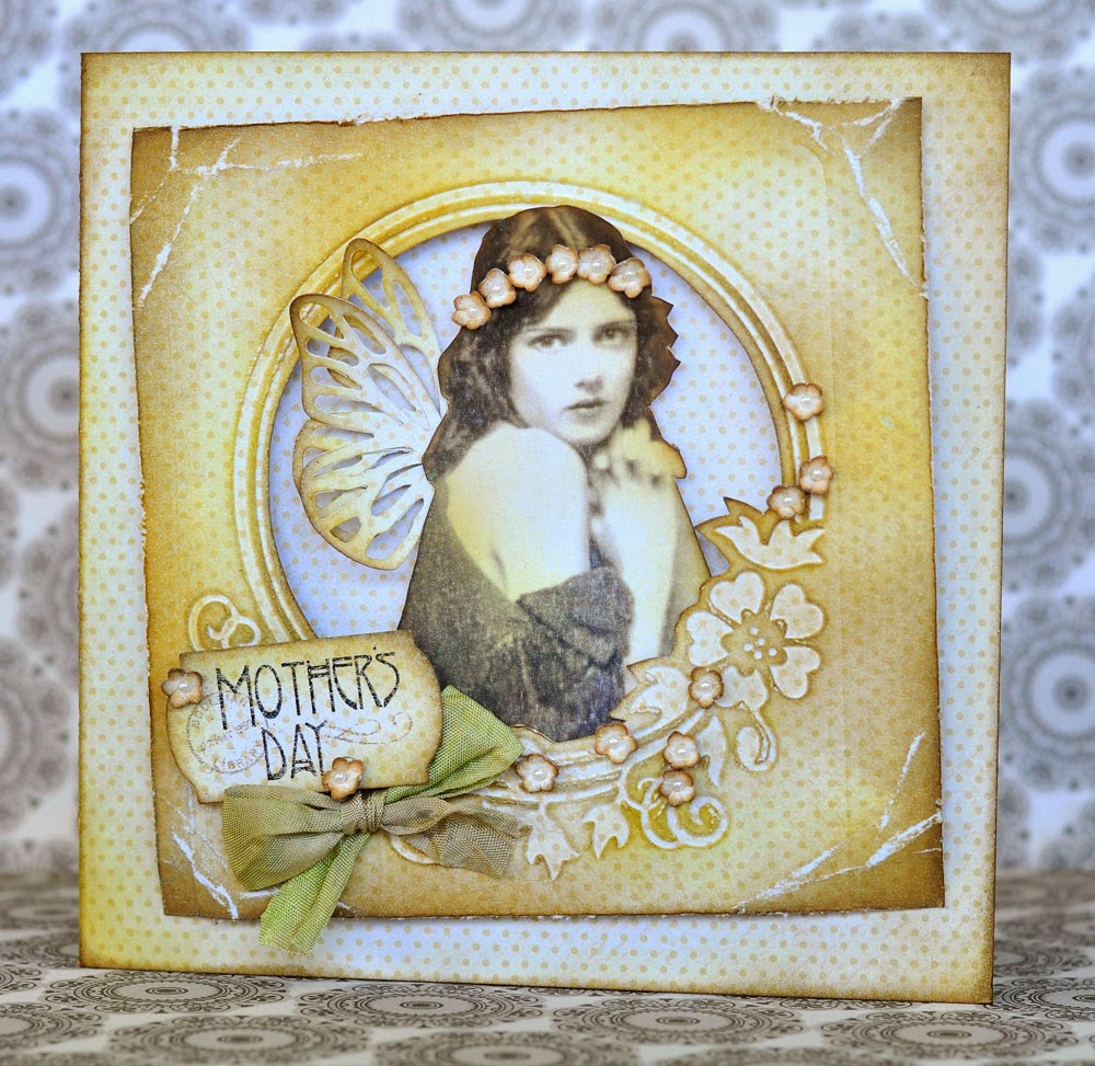 The photograph I found on the Internet and printed it out onto matt white photo paper before trimming to size and adding a little colour with my inks to age it further and help it to blend with the rest of the card.