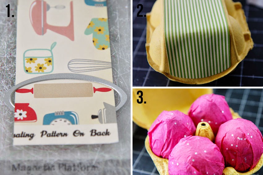 1. Using the Magnetic Platform and a die from Sizzix Framelits Die Set 7PK - Ovals I was able to cut a rounded edge on the pattern paper I wanted to dress the egg carton in.