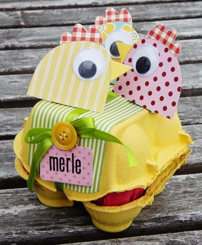 Her lige før påske benyttede jeg chancen til at dekorere en æggebakke med chokoladeæg i til en lille pige. Da æsken netop var til et barn, besluttede jeg mig for at lave den sjov, og til det formål brugte jeg en af fuglene fra Sizzix Bigz Die - Birds #3.