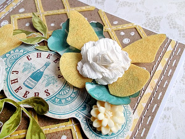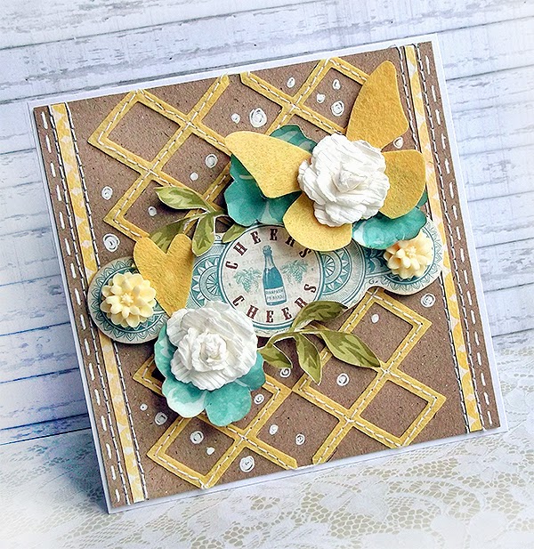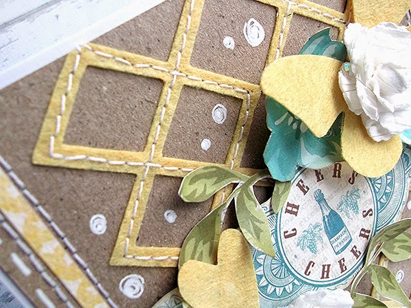 As you probably know, lots of Sizzix dies are designed to cut not only the paper or cardstock, but also a wide range of thicker materials, such as: cardboard, EVA foam, felt, fabric, magnet, leather etc... This kind of dies are: Bigz, Frameworks, Originals, Movers & Shapers, On The Edge and more. In my last card I used a sheet of polyester felt to cut out lattice pattern using Frameworks Die - Lattice. Framework dies are designed in a very useful way, it's means that you can use the cut outs as repeating pattern. I think this way is amazing, because you can combine a few of cut outs into one fantastic background. This time I cut out lattice pattern from the felt 2 times, then I added a stitch using a sewing machine, adding at the same time some more texture and interesting look to my card.
