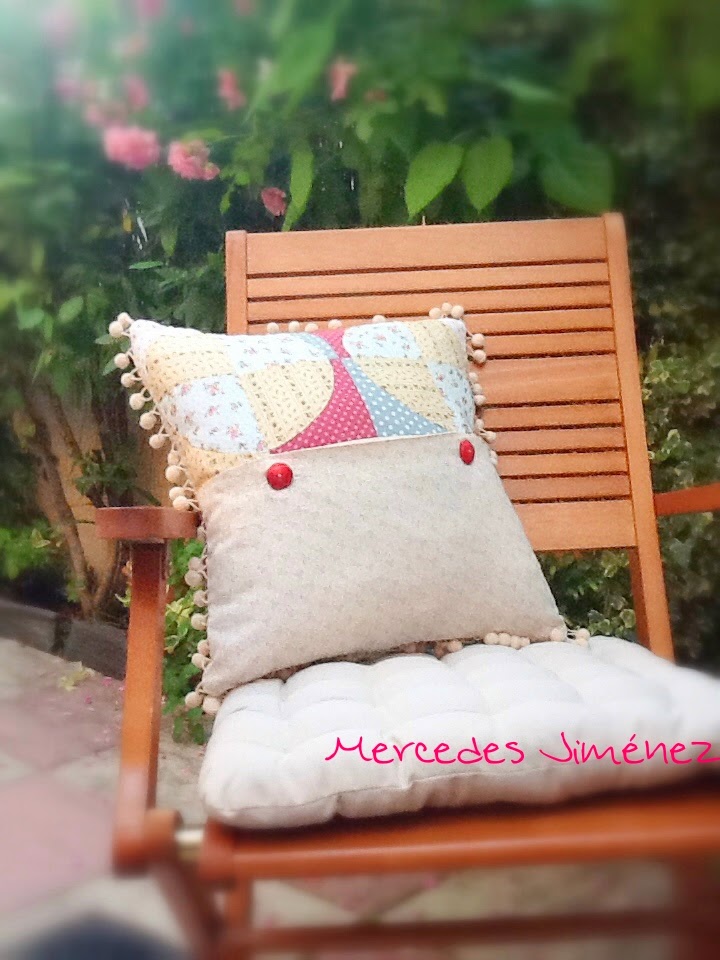 Finally I sew the two vintage buttoms I had bought in an old shop some time ago and I had a new and nice cushion !!!