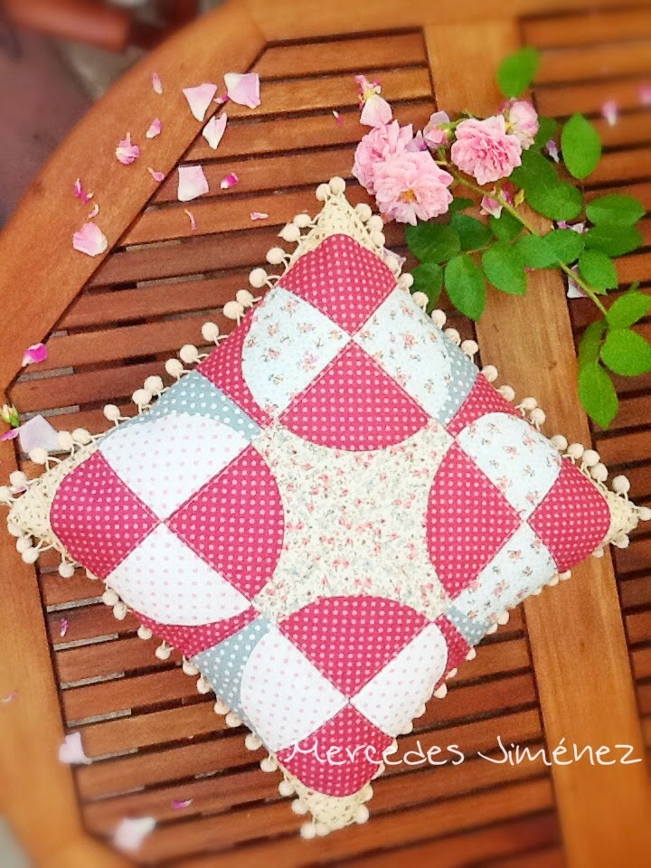 Mi proyecto para esta semana es sobre este bloque. Elegí algunos trozos de tela que tenía y les dí la oportunidad de convertirse en un bonito cojín.