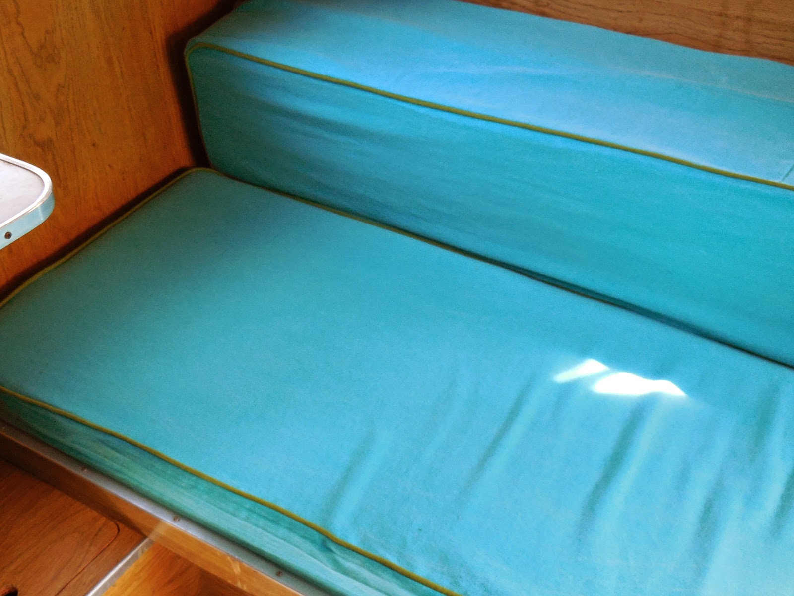 I live about 350 miles from my Mom, but when we get together, we sure have fun. A few months ago we met up with my sister and made seat cushions for my little Scotty camper. Mostly, they made the cushions and I got drinks, scissors, and supplies, pressed seams, made sandwiches and tried to be useful!