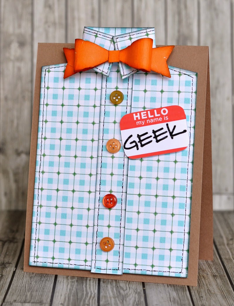 I added a few mismatched buttons down the central strip (very geeky!!) and created the name badge using my PC before rounding off the corners and attaching to the shirt with a 3D foam pad. Finally, I mounted the shirt onto a brown base card measuring 11 x 15 cm.I really had fun making these cards, I hope yo like them? Next week we will be looking at some fab 1950's themed dies which are perfect for Father's day or any masculine themed card, Can't wait!