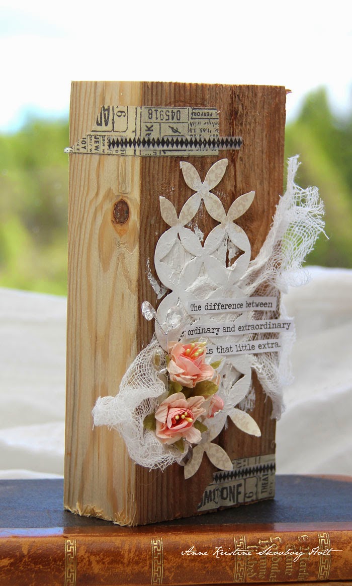 Other: Wooden block, Gesso, cheesecloth, Flowers - Kort & Godt, Tissue Tape - Tim Holtz idea-ology