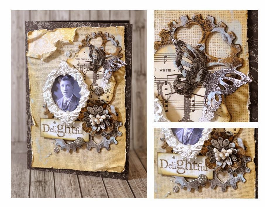There was still one bit missing, this is where the gears come in. I die-cut two sets to create the eyes and gave them the pewter treatment.