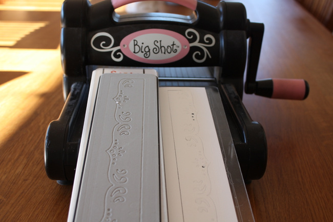 First you will need a Sizzix border, like this one. I used plain white cardstock to brighten up the earth colours.