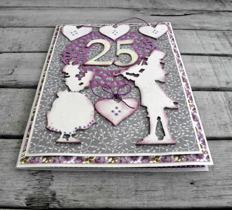 I hope you all had a great week today i will show you a card 15x 21 cm made for our niece and her husband who has been married for 25 years. i think it was so fine to use Tim Holtz bigz die Victorian Carolers
