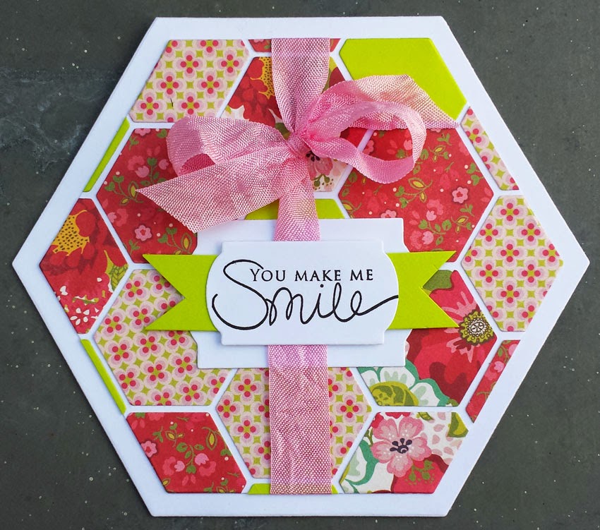 I denne uge ville jeg springe boxen og lave et kort med seks kanter, og jeg tog Framelits Die Set 10PK - Hexagons til hjælp.